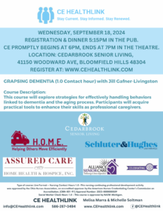 Register Now for Our Upcoming CE: “Grasping Dementia” – Bloomfield Hills